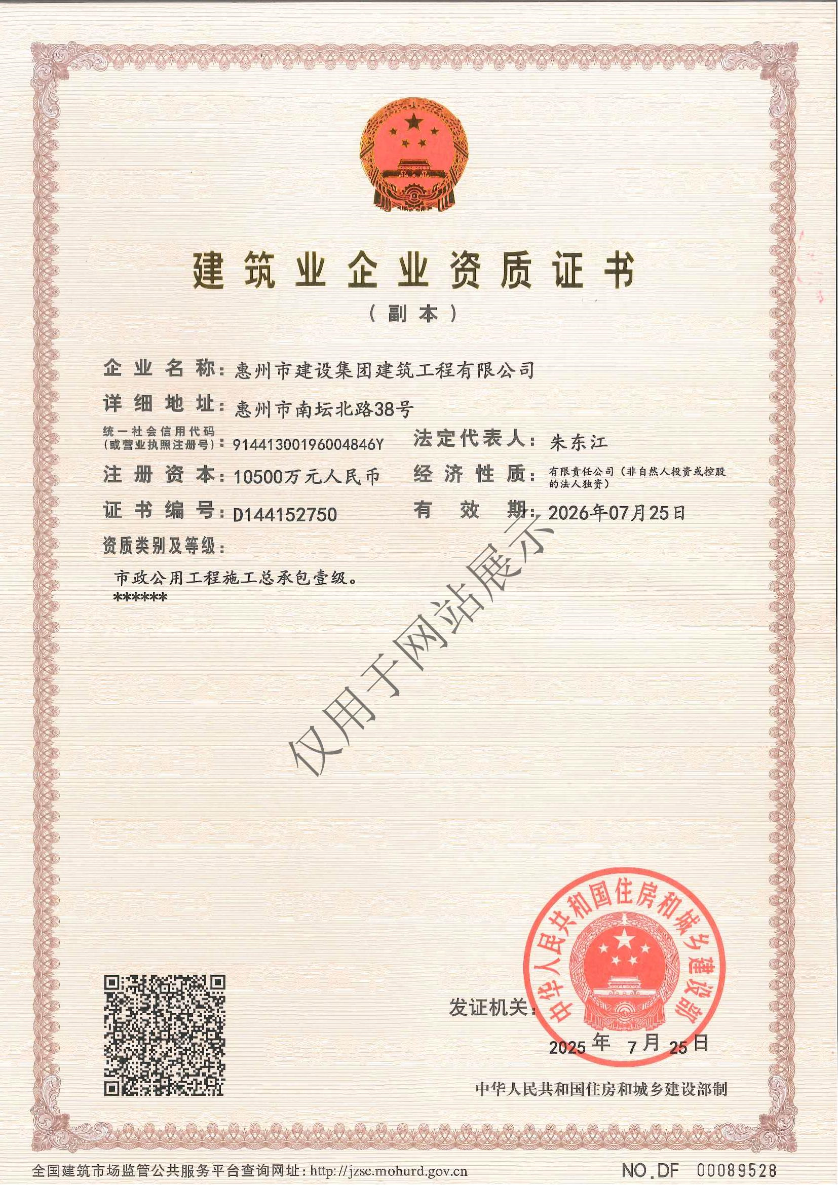 惠州市市政工程有限公司組建于1958年3月,前身是惠州市市政隊,1993年更名為惠州市市政工程總公司,2018年4月公司制改造更名為惠州市市政工程有限公司。是經(jīng)惠州市人民政府國有資產(chǎn)監(jiān)督管理委員會批準,依據(jù)《公司法》等法律規(guī)定,由惠州市人民政府國有資產(chǎn)監(jiān)督管理委員會所屬企業(yè)惠州市城市建設(shè)投資集團有限公司出資,按照現(xiàn)代企業(yè)制度改造的有限責(zé)任公司(法人獨資),注冊資本金為人民幣1.6億元。公司的主營業(yè)務(wù)是市政工程、房屋建筑工程施工和惠城中心區(qū)城市道路橋梁、排水等市政公用設(shè)施的日常維修維護及相關(guān)突擊搶修任務(wù)。目前有市政公···